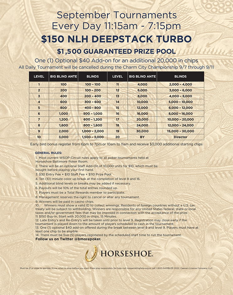 Wsop Baltimore Poker Tournaments Maryland Horseshoe Baltimore Casino